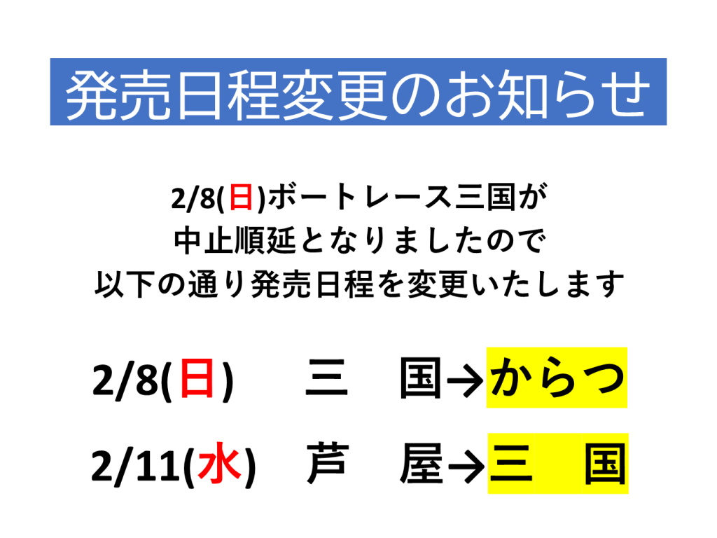 発売日程変更のお知らせ 2/8(日),11(水)